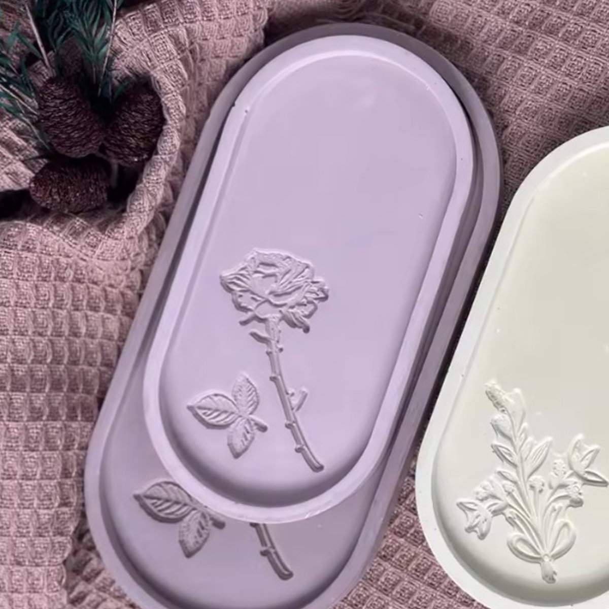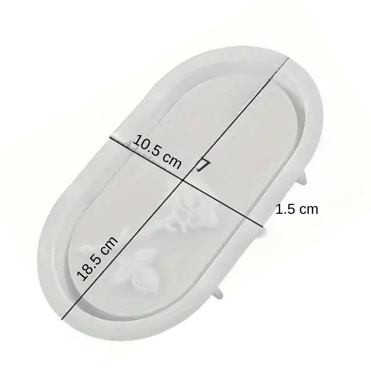 Molde con diseño delicado en forma ovalada y detalle en relieve de flor, ideal para crear piezas decorativas elegantes con acabado artesanal. Perfecto para estilos románticos o minimalistas