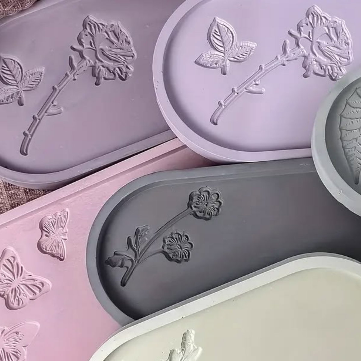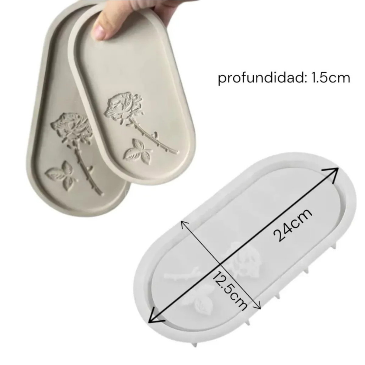 Molde ideal para crear bandejas decorativas con relieve de rosa, perfecto para piezas elegantes y delicadas