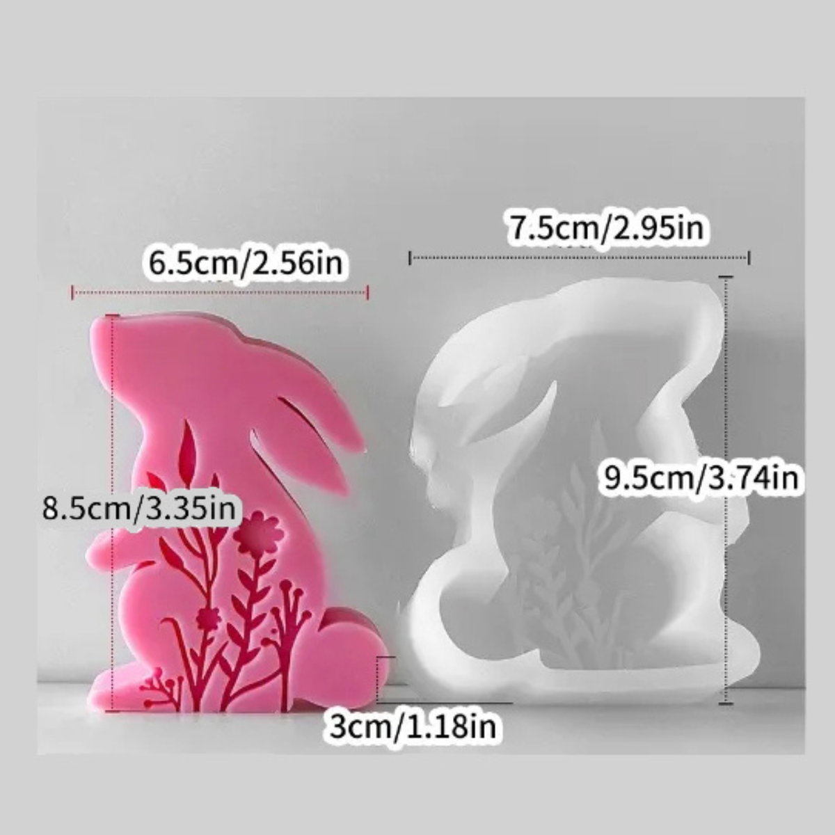 Diseño artístico de conejo con detalles florales en su interior, ideal para piezas decorativas elegantes
