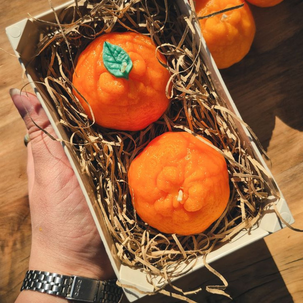 Molde de silicona con diseño de fruta tipo mandarina, ideal para velas decorativas y piezas artesanales con acabado realista.