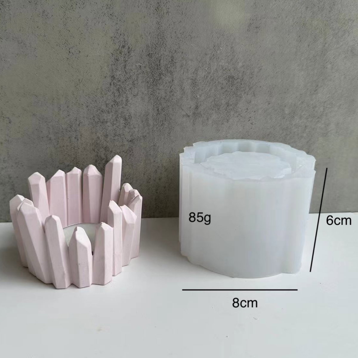 Molde con diseño inspirado en formaciones de cristales, ideal para crear porta velas con un acabado moderno y llamativo. Su forma irregular aporta textura y un estilo decorativo único