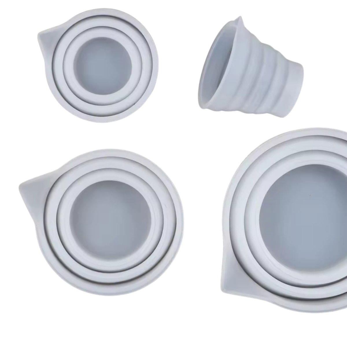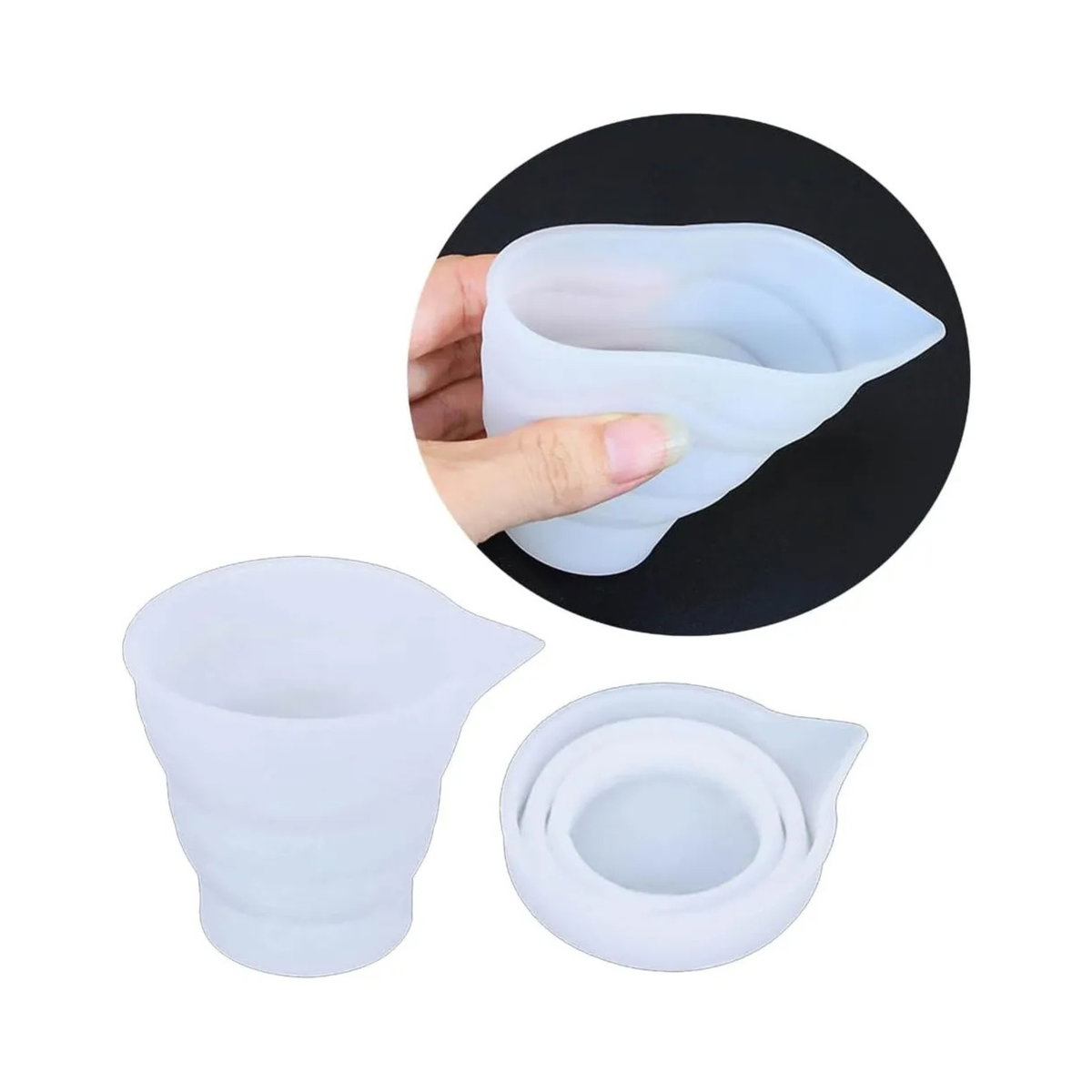 Vaso medidor de silicona plegable, ideal para trabajar con resina, cemento, yeso, velas y manualidades. Su diseño plegable facilita el guardado y ahorra espacio. Cuenta con medidas marcadas hasta 500 ml para una dosificación precisa. Material resistente, antiadherente y fácil de limpiar, reutilizable y práctico para uso artesanal o profesional.