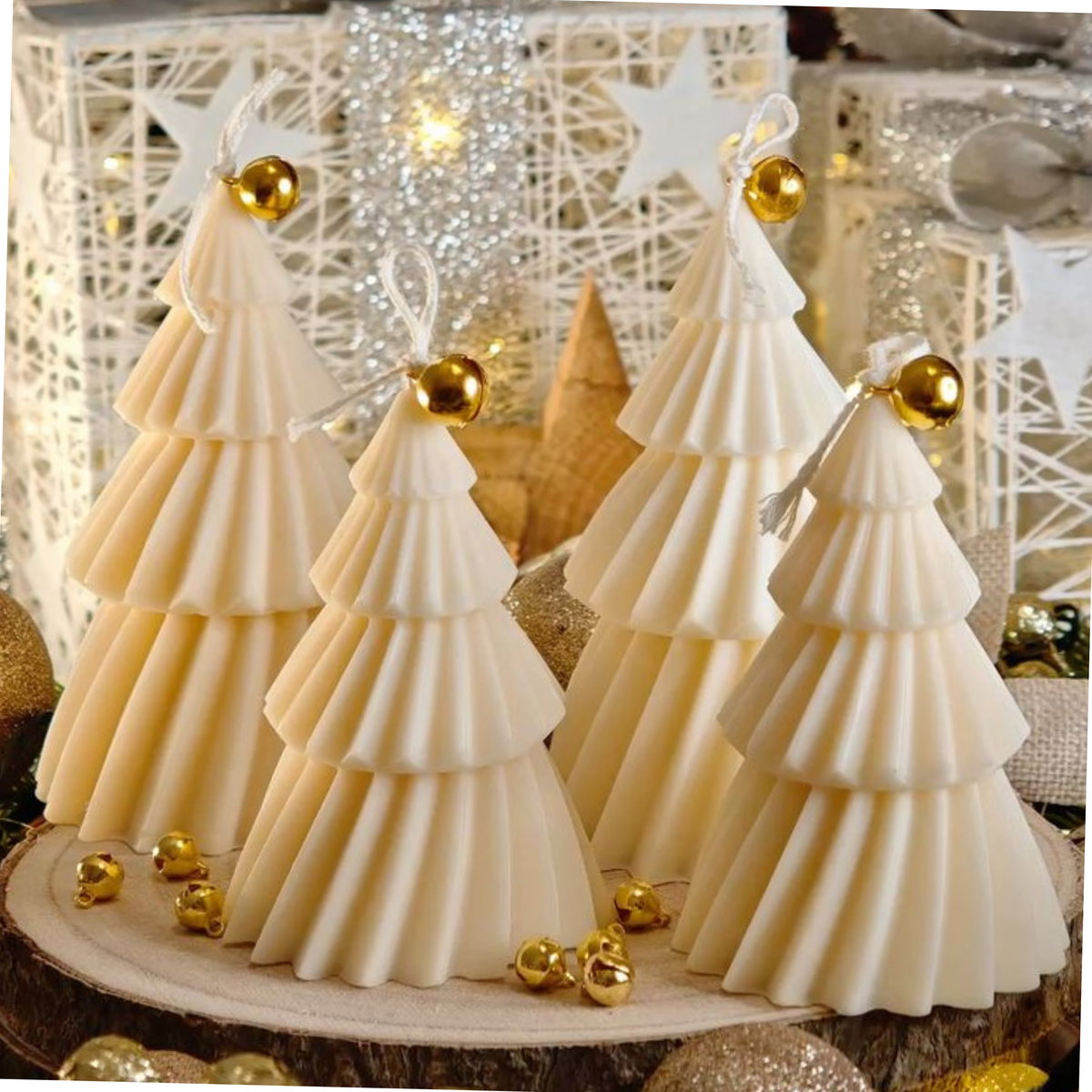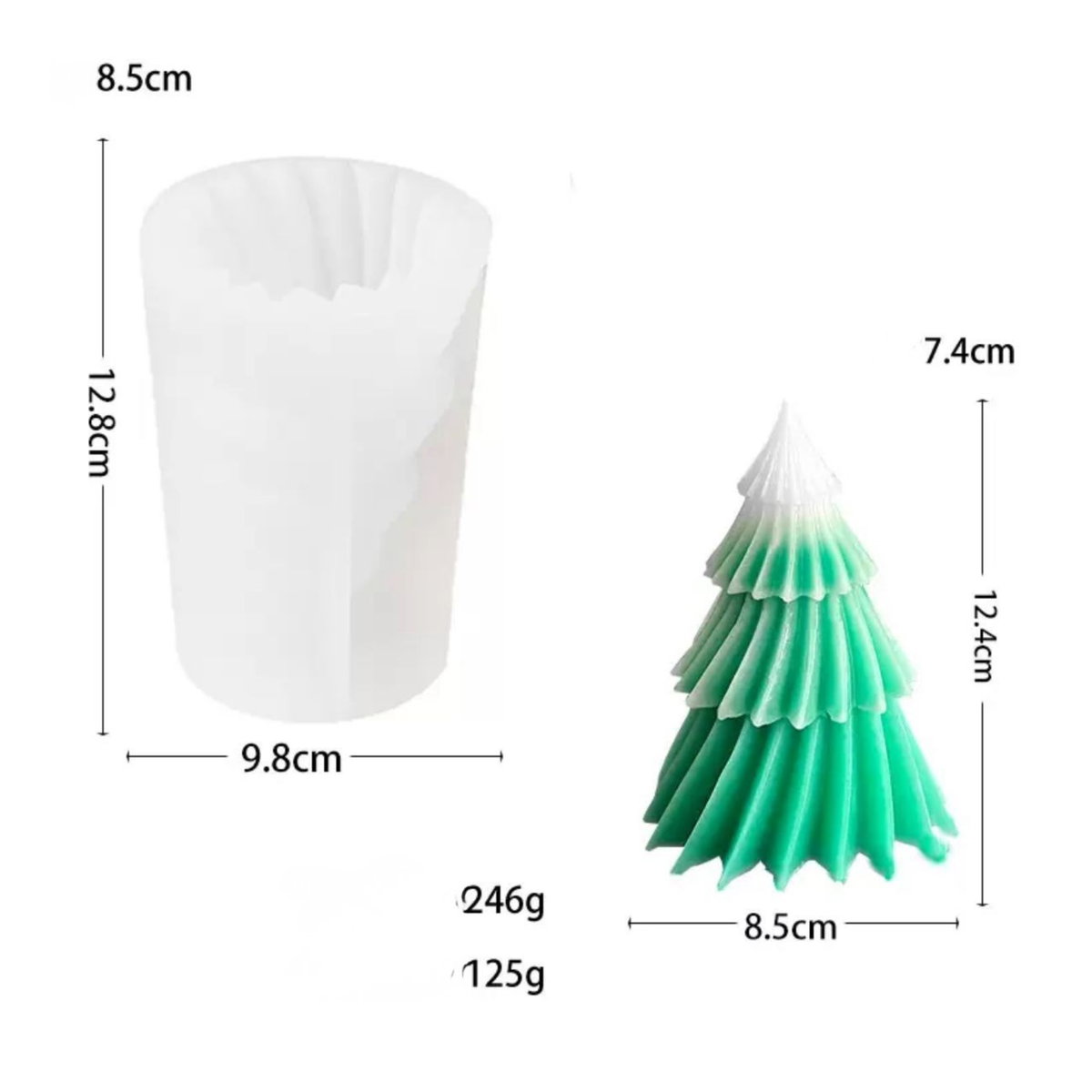 Molde de silicona flexible de alta calidad, ideal para la elaboración de velas decorativas, especialmente con diseño de árbol navideño en relieve. Su acabado detallado permite obtener piezas prolijas y bien definidas.