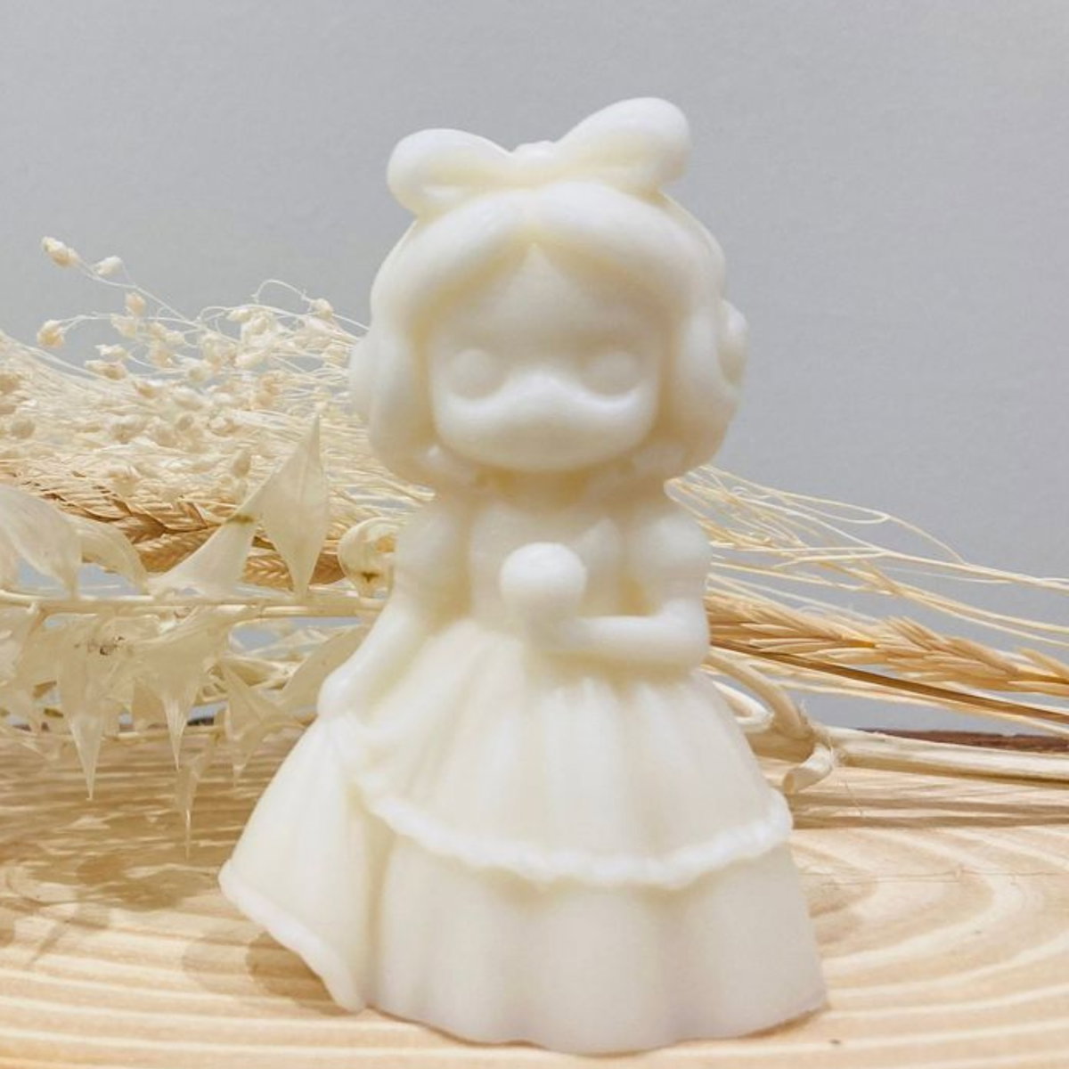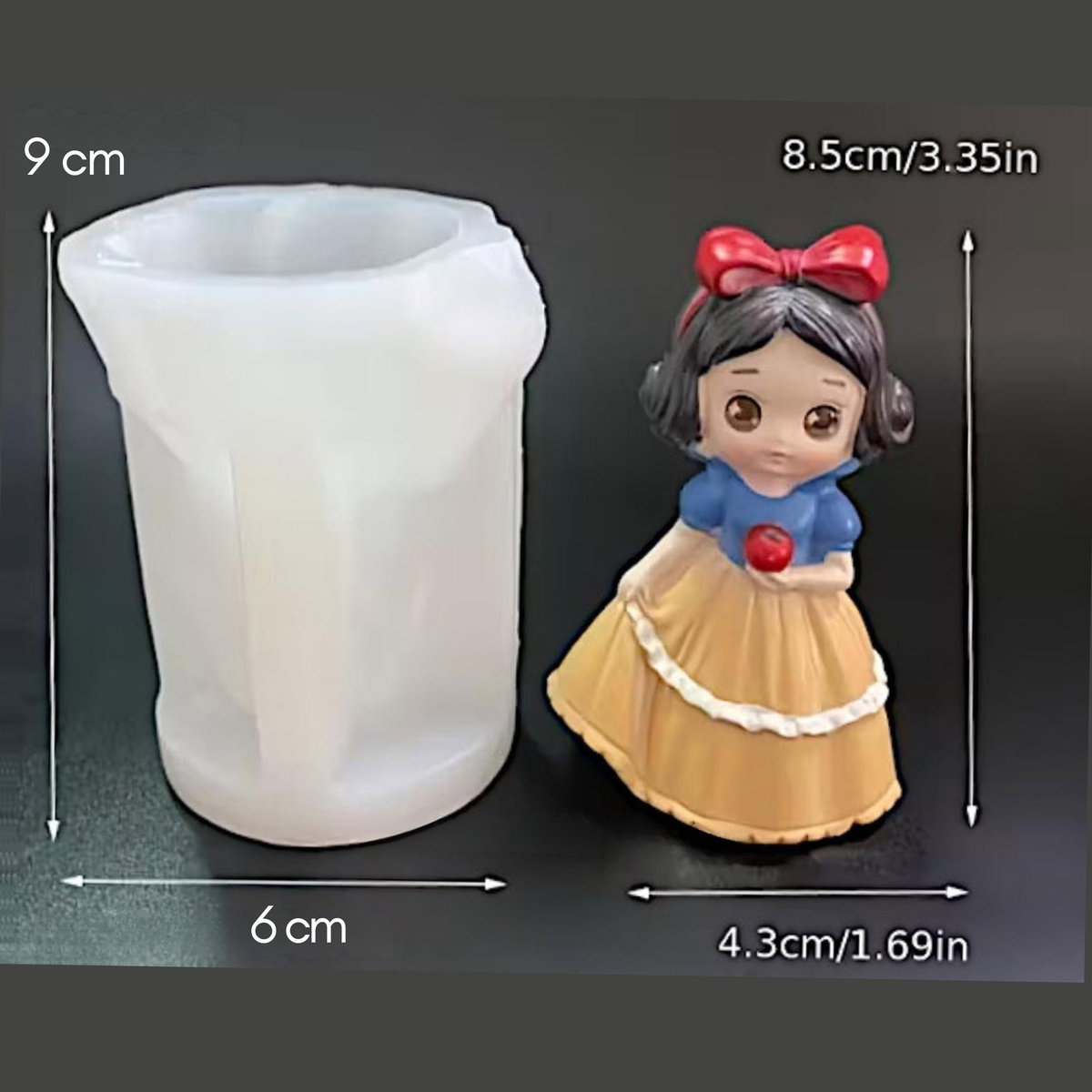 Molde de silicona flexible con diseño de personaje femenino de estilo tierno y detallado, ideal para la elaboración de velas, figuras decorativas o piezas artesanales. El molde tiene un tamaño aproximado de 9 cm de alto por 6 cm de ancho, y la figura final mide alrededor de 8,5 cm de alto por 4,3 cm de ancho. Fabricado en silicona resistente, permite un desmolde fácil y conserva con precisión cada detalle del diseño.