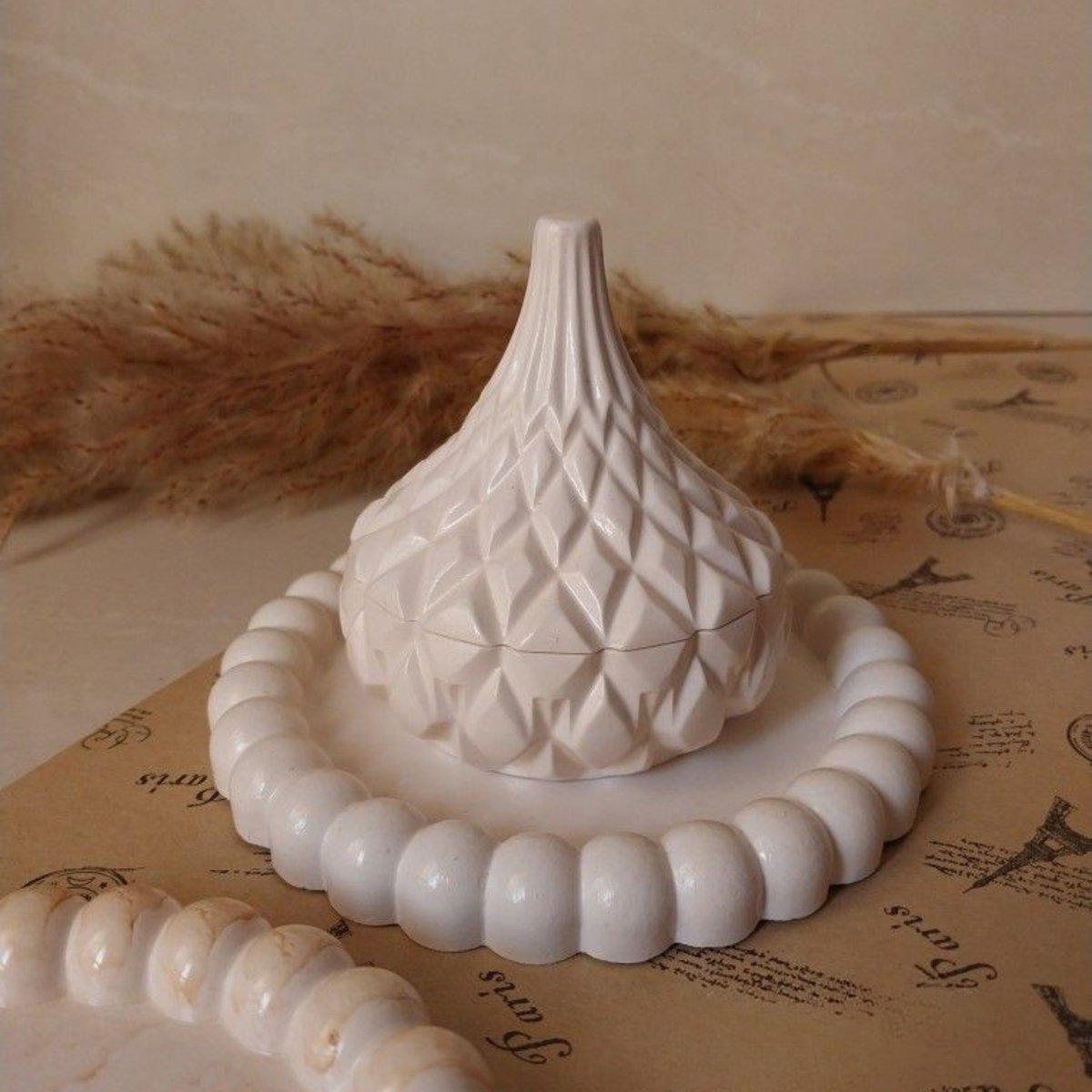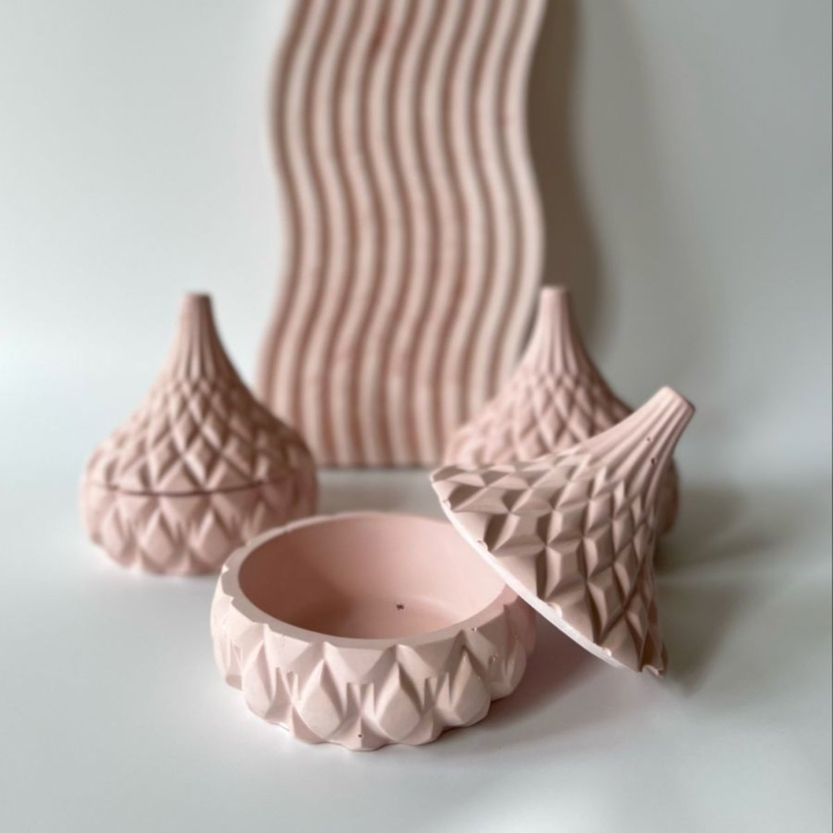 Molde decorativo con diseño geométrico en forma de joyerito con tapa, ideal para crear piezas elegantes y modernas en yeso y cemento