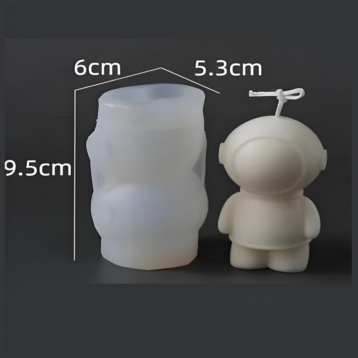 Molde de silicona para vela decorativa con diseño de muñeco astronauta, ideal para crear piezas modernas, minimalistas y muy llamativas.