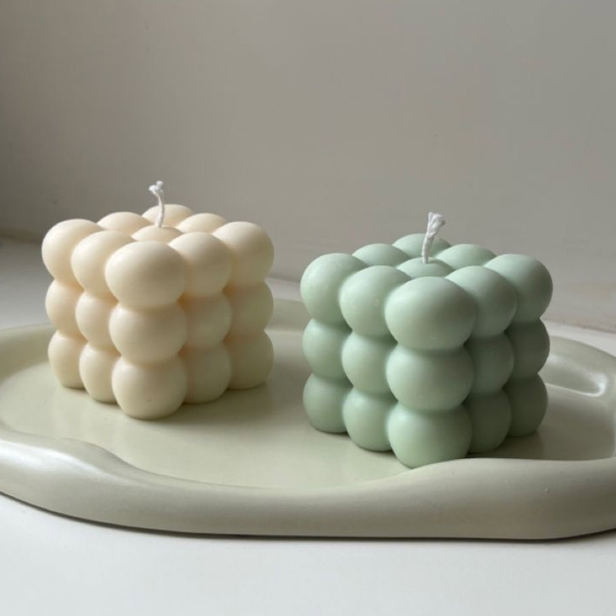 Molde de silicona con diseño tipo cubo burbuja, ideal para velas decorativas modernas con acabado uniforme y prolijo.