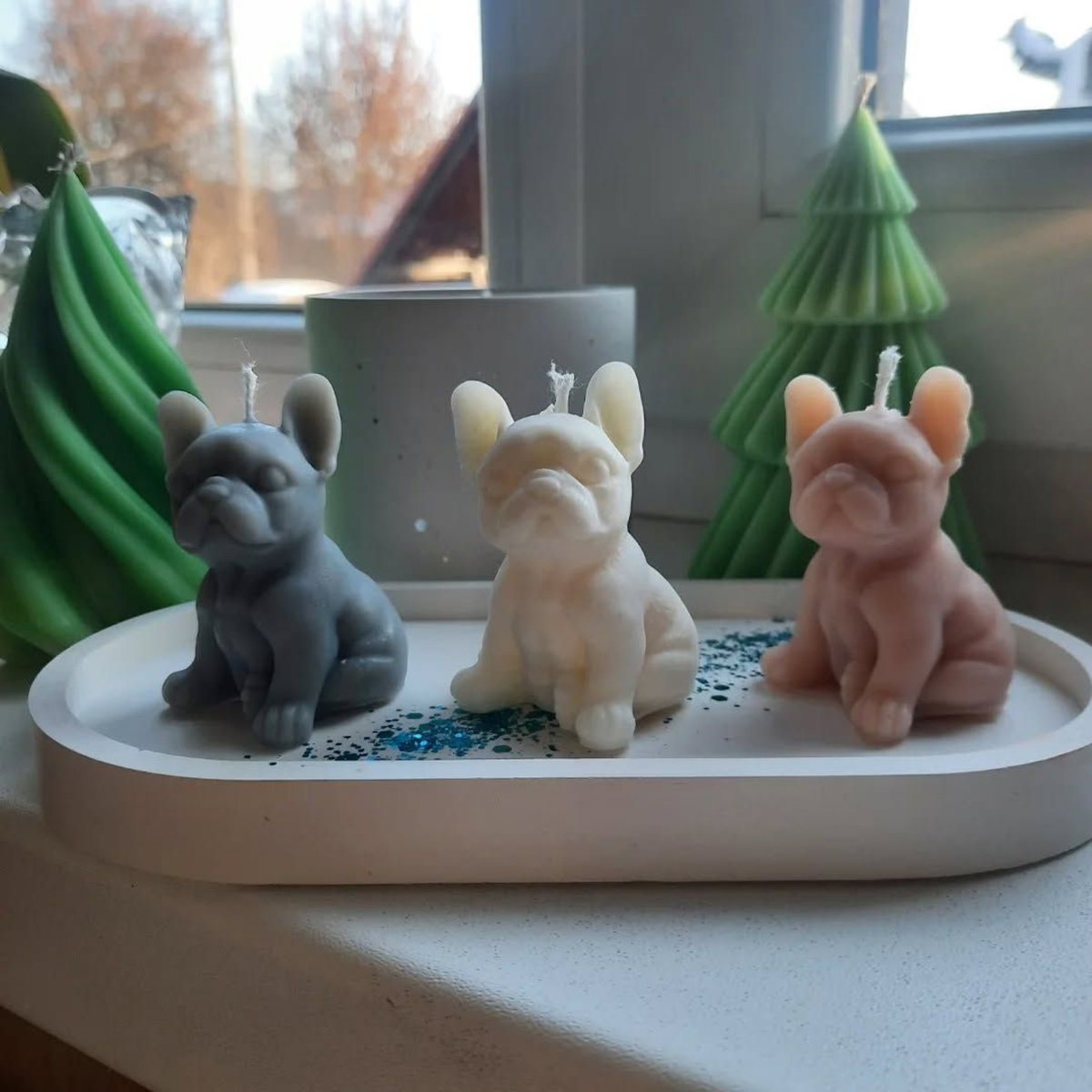 Molde de silicona con diseño de perro tipo bulldog, ideal para la elaboración de velas decorativas con alto nivel de detalle y acabado realista. Su diseño incluye rasgos definidos como orejas, ojos y textura del pelaje, logrando una pieza atractiva y de gran presencia.