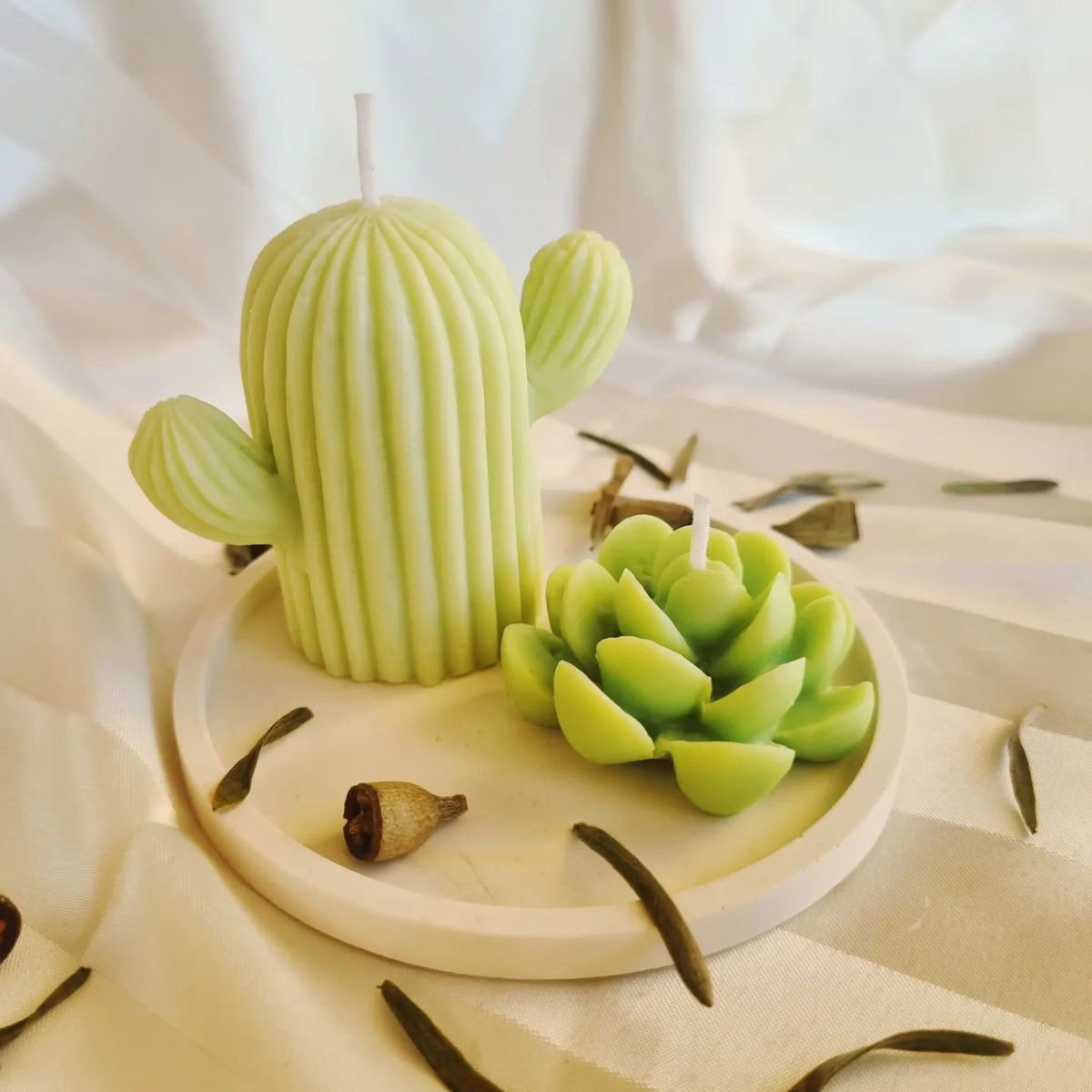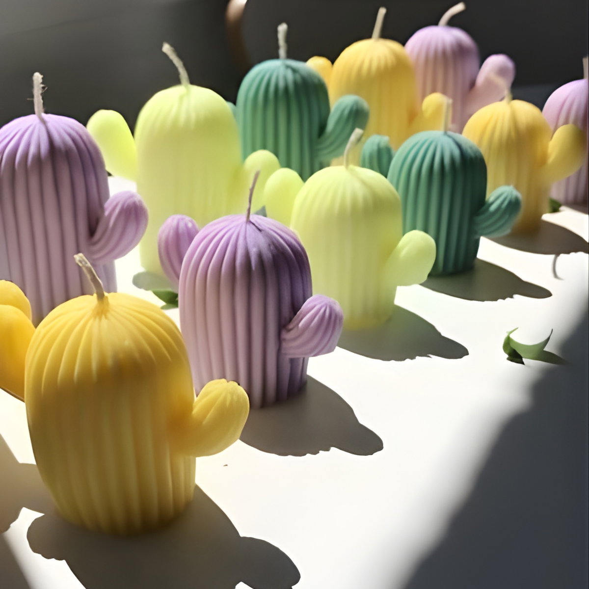 Molde de silicona con diseño de cactus, ideal para realizar velas decorativas, piezas en resina, yeso o porcelana fría. Su forma tridimensional permite obtener un acabado detallado con textura marcada.