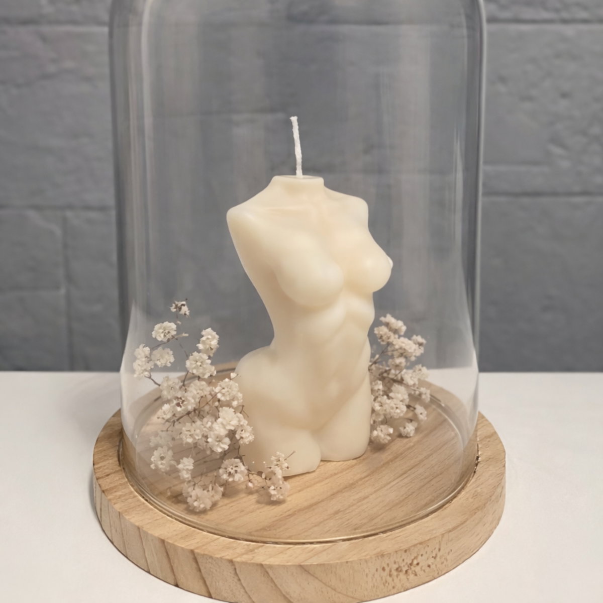 Molde de silicona para velas con diseño de figura femenina (torso), ideal para crear piezas decorativas modernas y artísticas.