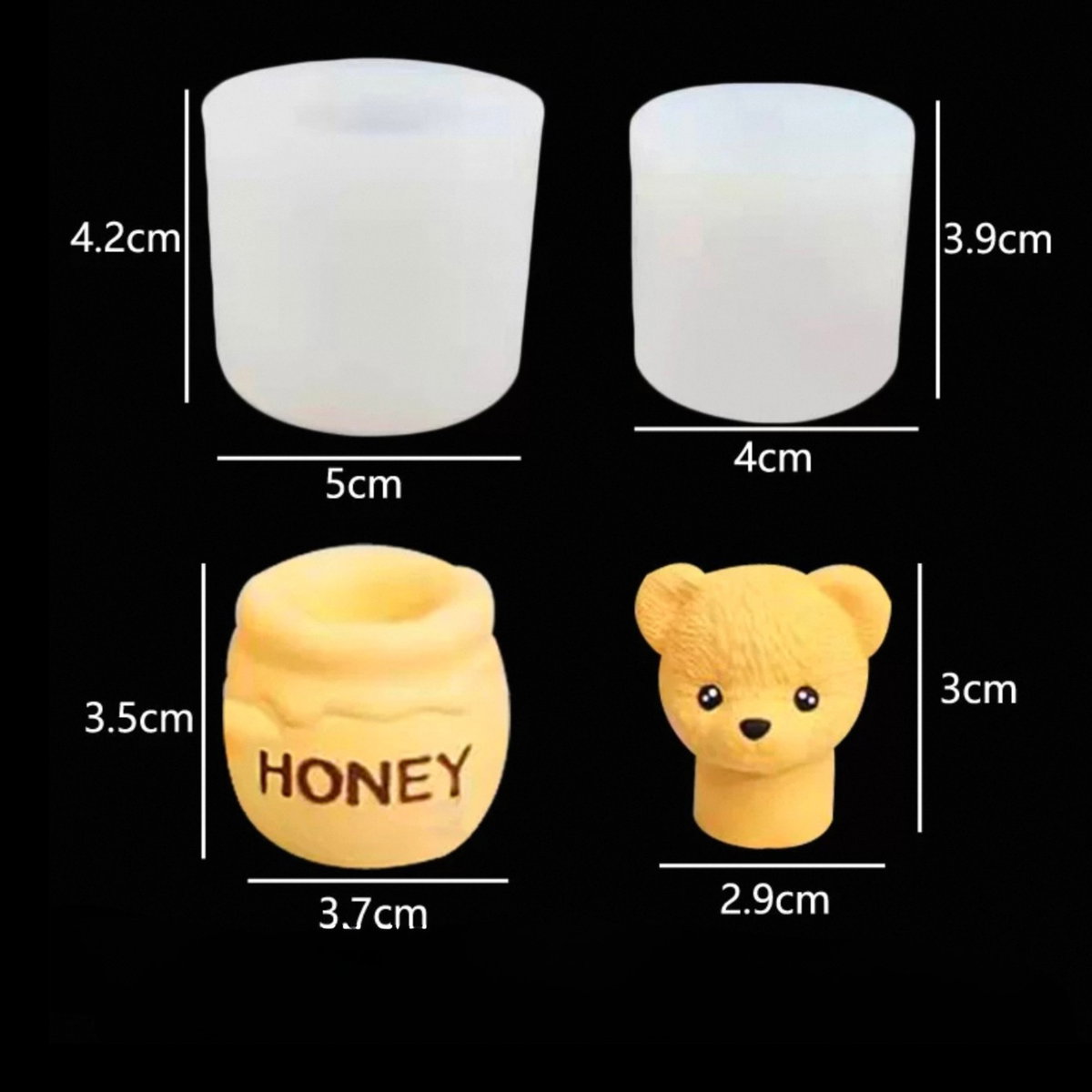 Set de dos moldes adorables para crear figuras de cabecita de osito y tarrito de miel, ideal para combinaciones dulces y decorativas