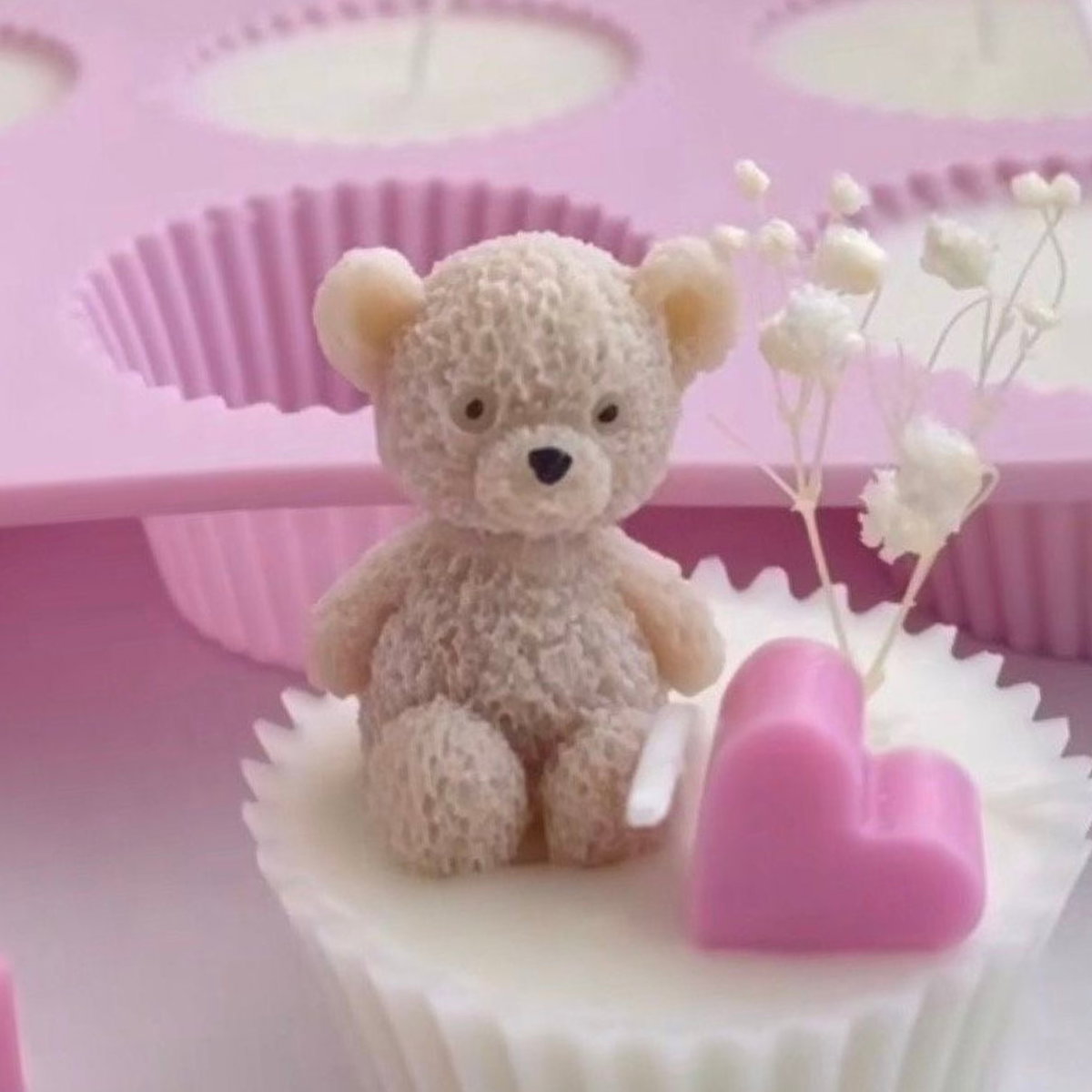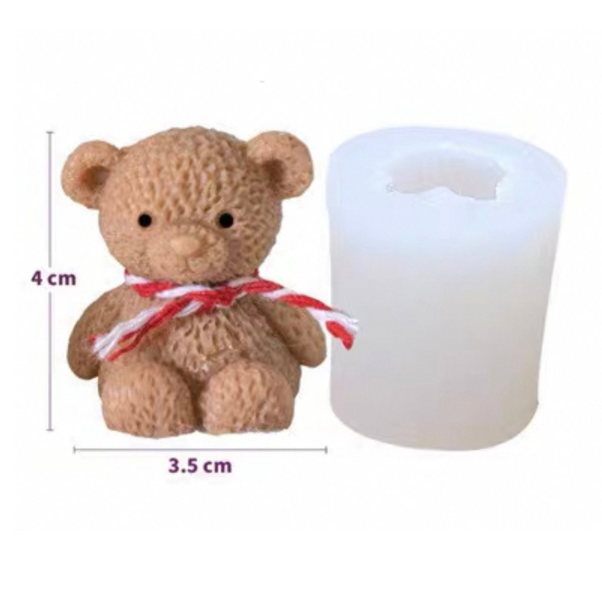 Molde de silicona con diseño de osito clásico con textura tipo peluche, ideal para la elaboración de velas decorativas pequeñas con acabado tierno y detallado. Su superficie con relieve imita el efecto de pelaje, logrando un resultado atractivo y prolijo.