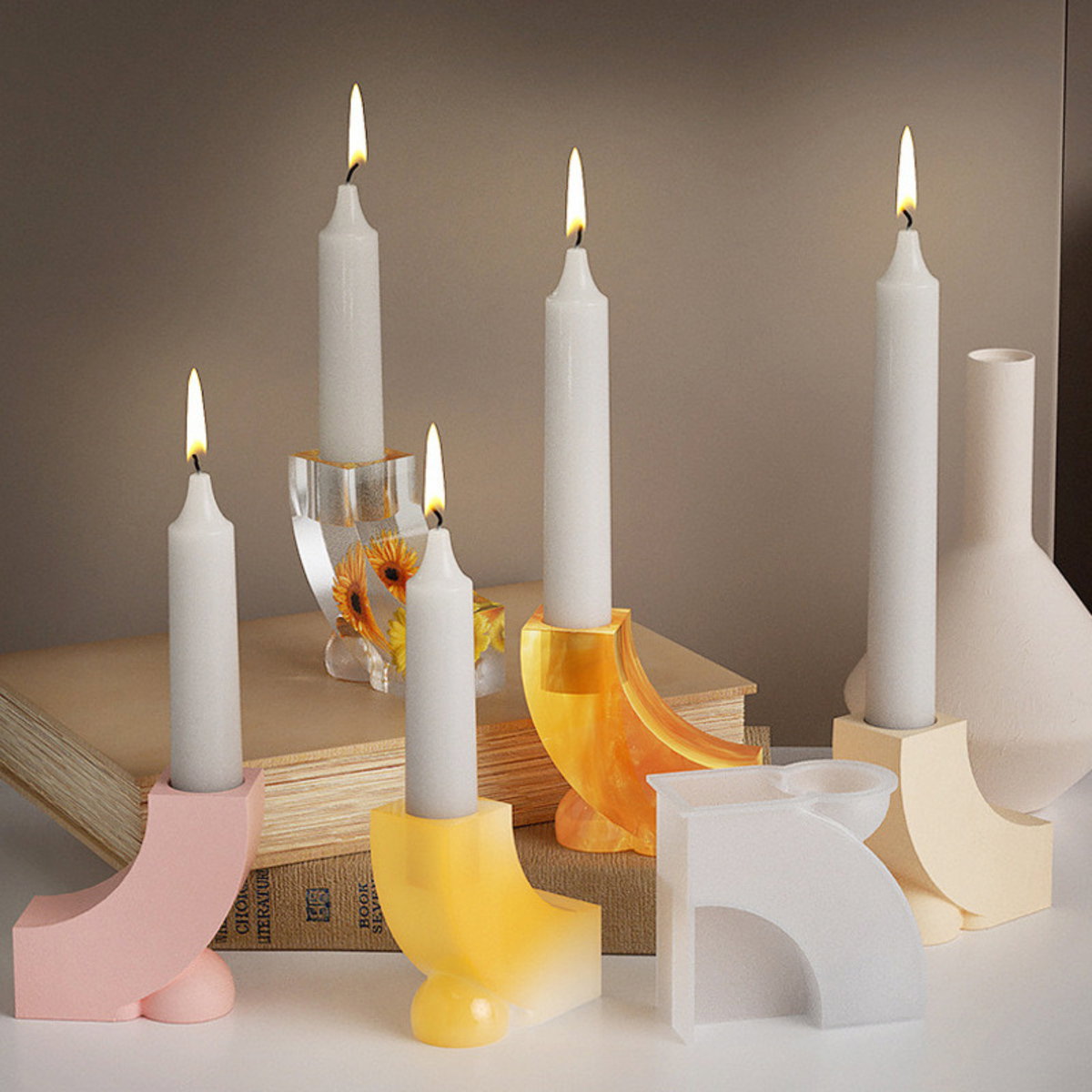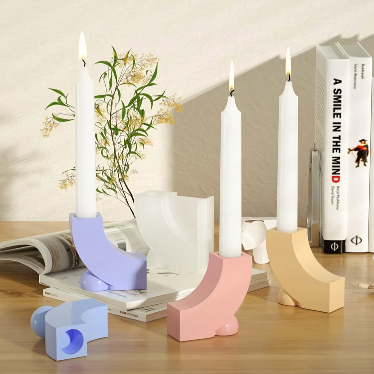 Molde con diseño curvo y minimalista ideal para crear portavelas decorativos tipo candelabro. Su forma moderna aporta un estilo elegante y contemporáneo, perfecto para decoración de interiores