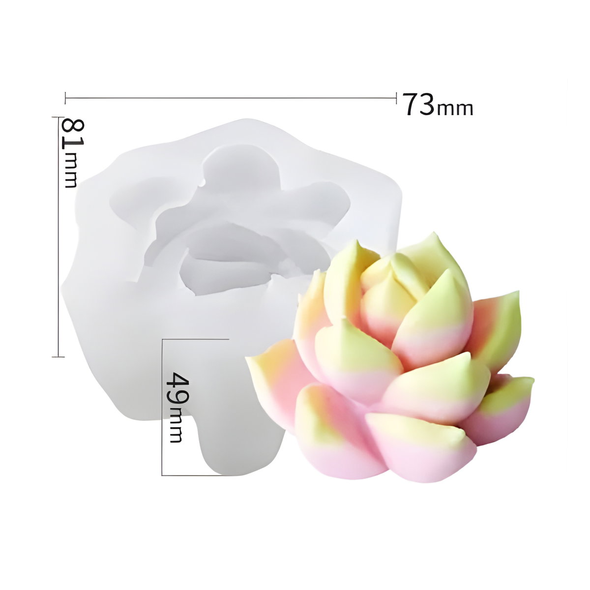 Molde de silicona con diseño de flor tipo suculenta, ideal para la elaboración de velas decorativas y piezas artesanales. Fabricado en silicona flexible, permite un desmolde fácil sin dañar los detalles, logrando acabados prolijos y definidos.
